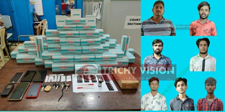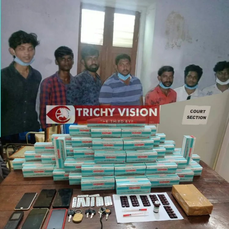 அப்போது, அங்கு இருந்த குமார், ராம்நாத், நந்தகுமார், பாலாஜி, பிரகாஷ், குமார் என்கிற குமரேசன், ஆகிய 6 பேரை மடக்கி பிடித்தனர். அவர்களிடம் மருத்துவர்களின் சீட்டு இன்றி விற்பனை செய்ய தடை செய்யப்பட்ட 23,100 Nitravet மாத்திரைகள், Nitrosun மாத்திரைகள் 300, Tydel மாத்திரை 50 ஆகிய மாத்திரைகளை ஆகிய மாத்திரைகளை போதை மருந்தாக மாற்றி பயன்படுத்தி வந்ததும், இவற்றை பிற இளைஞர்களிடம் விற்பனை செய்து வந்தது தெரியவந்தது.