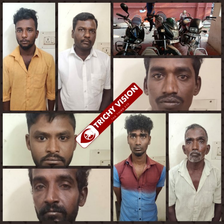 இந்த திருட்டு சம்பவம் குறித்து மண்ணச்சநல்லூர் காவல் ஆய்வாளர் இளவரசன் ஐபிசி 379 மற்றும் மைன்ஸ் மினரல் ஆக்ட் பிரிவுகளின் வழக்கு பதிந்து நொச்சியம் பகுதியைச் சேர்ந்த ரவி, கோபிநாத், லோகேஸ்வரன், லட்சுமணன், , ரஞ்சித் குமார், மற்றும் முசிறி அய்யம்பாளையம் பகுதியைச் சேர்ந்த ரஜினி ஆகிய 7 பேரை கைது செய்தனர்.