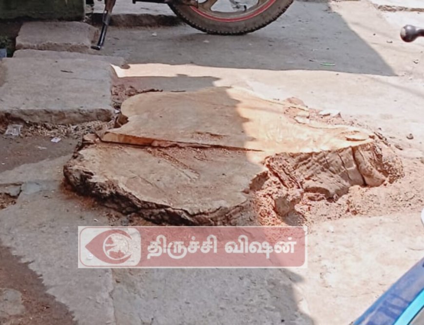 இந்த மரத்தை தனது கடை வியாபாரத்திற்கு இடைஞ்சலாக இருந்ததாக கருதிய இராமானுஜம். கடந்த 07.05.2025ந் தேதி அதிகாலை ஜனநடமாட்டம் இல்லாத நேரத்தில் சட்டவிரோதமாக திருச்சி மாநகராட்சியில் எவ்வித முன் அனுமதியும் பெறாமல் வேறோடு வெட்டி விற்றுள்ளார்.