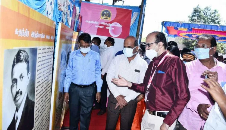 சுதந்திரப் போராட்ட தியாகிகளை நினைவு கூறும் வகையில் புகைப்படக் கண்காட்சி அமைக்கப்பட்டிருந்ததை மாவட்ட ஆட்சித்தலைவர் ரிப்பன் வெட்டி திறந்து வைத்தும், சுதந்திர போராட்ட தியாகிகளை கௌரவிக்கும் வகையில் பொன்னாடை அணிவித்தும், உப்பு சத்தியாகிராக ஞாபக சின்னத்தில் மலர்தூவி மரியாதை செலுத்தியும் 2 கி.மீ.தூரத்திற்கு நடைபயண பேரணியை தொடங்கி வைத்தார்.