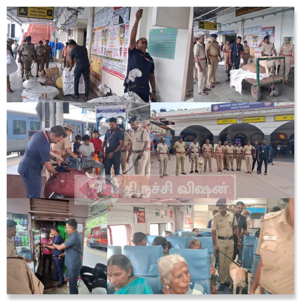 K .அருள் ஜோதி, IRPFS, முதன்மை தலைமை பாதுகாப்பு ஆணையர், தெற்கு ரயில்வே அவர்களின் உத்தரவின் பேரில், திருச்சி ரயில்வே பாதுகாப்பு படை முதுநிலை கோட்ட ஆணையர் மதிப்பிற்குறிய Prashant Yadav,IRPFS மற்றும் உதவி ஆணையர் Pramod Nair, ஆகியோர்களது மேற்பார்வையில், திருச்சி RPF ஆய்வாளர் Ajay Kumar, திருச்சி ரயில்வே பாதுகாப்பு படை, வெடிகுண்டு தடுப்பு பிரிவு உதவி ஆய்வாளர் சரவணன்,(SARAVANAN,SI/BDS), திருச்சி ரயில்வே போலீஸ் உதவி ஆய்வாளர் ஸ்டாலின், அவர்கள் தலைமையில்,
