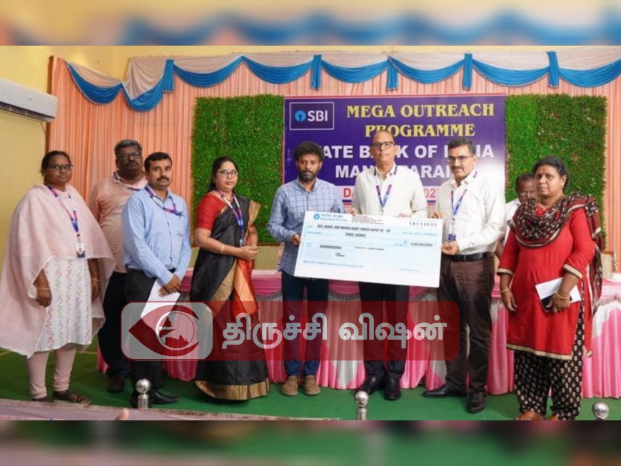 திருச்சி மாவட்டம் மணப்பாறை வட்டார கிளை சார்பில் நடைபெற்ற விழாவில் பாரத ஸ்டேட் வங்கியின் பொது மேலாளார் கோவிந்த் நாராயணன் கோயல், திருச்சி மண்டல துணை பொது மேலாளார் நவீன்குமார், மண்டல மேலாளர் திவ்யா தேஜா,