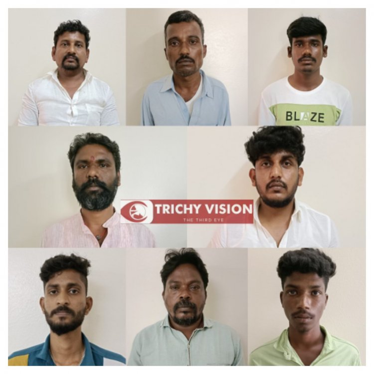திருச்சி பிள்ளைமாநகரை சேர்ந்த மரியமெர்குலிஸ் (47) மற்றும் ராமநாதபுரத்தை சேர்ந்த துரைமுருகன் (37) ஆகிய 7 பேரை கைது செய்தனர். மேலும் அவர்களிடமிருந்து 8 செல்போன்கள், ரூ.20 ஆயிரம், கார் மற்றும் இருசக்கர வாகனங்களை பறிமுதல் செய்துள்ளனர். இது குறித்து பாலக்கரை மற்றும் காந்தி மார்க்கெட் காவல் நிலையங்களில் வழக்கு பதிவு செய்யப்பட்டுள்ளது.