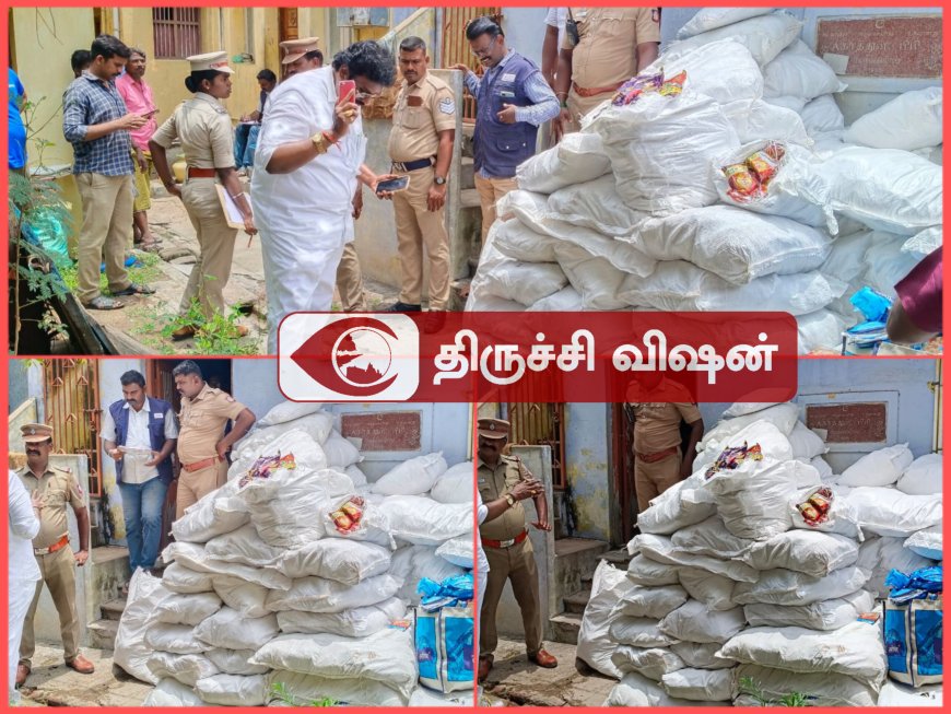திருச்சி மாவட்டம் துறையூர் பாலக்கரை பகுதியில் உள்ள தெப்பக்குளம் அருகே குடோன் ஒன்றில் தடை செய்யப்பட்ட புகையிலை பொருட்கள் பதுக்கி வைக்கப்பட்டு இருப்பதாக திருச்சி மாவட்ட உணவு பாதுகாப்பு அதிகாரி ரமேஷ்பாபு அவர்களுக்கு கிடைத்த ரகசிய தகவல் கிடைத்தது.