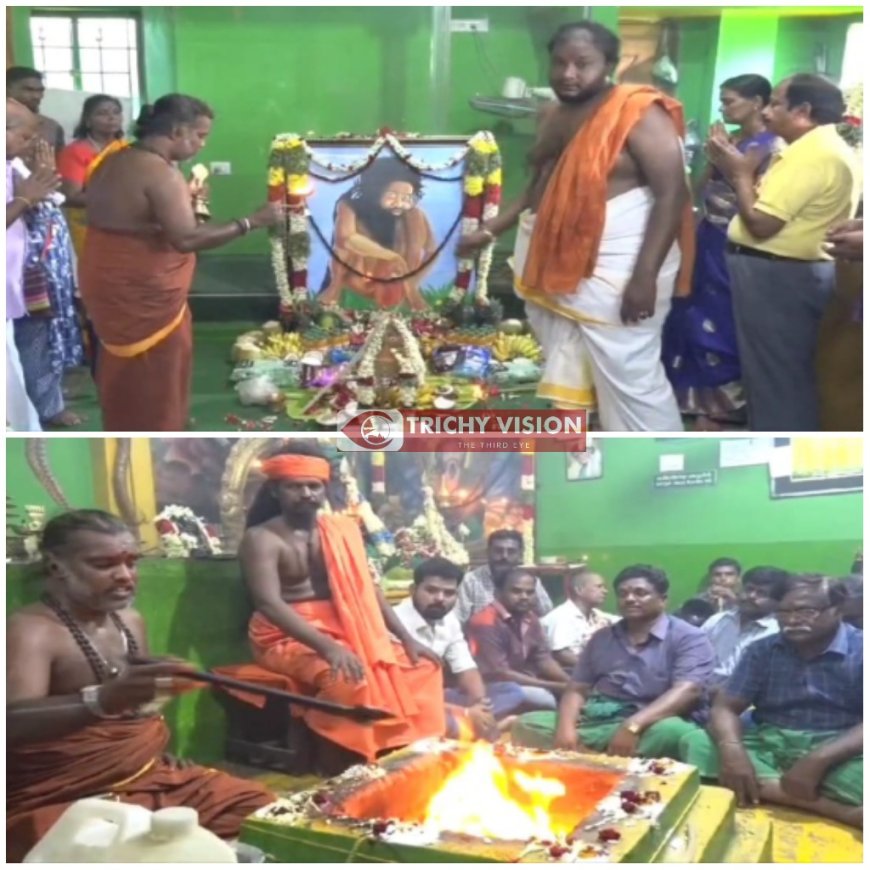 திண்டுக்கல் மாவட்டம் பழனி மலையின் அடிவாரத்தில் வாழ்ந்த மகான் சாக்கடை சித்தர். கடந்த 2016ம் ஆண்டு வைகாசி மாதம் 26ம் நாள் மாதி நிலை அடைந்தார். இதனிடையே ஓம் ஸ்ரீலஸ்ரீ பகவான் பழனி சாக்கடை சித்தரின் 8ம் ஆண்டு மகா குருபூஜை விழா திருச்சி டிவிஎஸ் டோல்கேட்டில் உள்ள ஸ்ரீஸ்ரீபாம்பாட்டி சித்தர் ஓங்கார குடிலில் இன்று நடைபெற்றது.