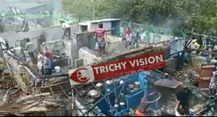 துவாக்குடி செடிமலைமுருகன் கோவில் தெரு பகுதியில் 9 வீடுகள் திருச்சி திருவெறும்பூர் அருகே துவாக்குடி செடிமலைமுருகன் கோவில் தெருவில் உள்ள பழனி என்பவர் வீட்டில் தீடீரென தீப்பற்றியது.