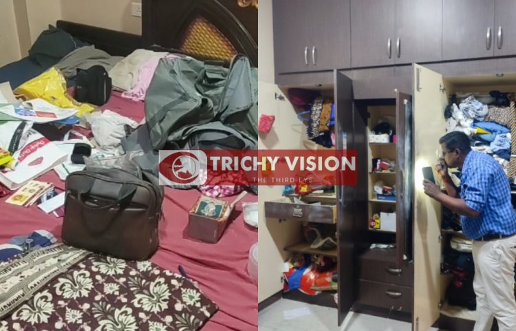 திருச்சி உறையூர் ராமலிங்க நகர் மேலவிஸ்தரிப்பு இரண்டாவது குறுக்கு தெருவை சேர்ந்தவர் கனிமொழி. இவர் திருச்சி மாவட்ட ஆட்சியர் அலுவலகத்தில் வட்டார வளர்ச்சி அதிகாரியாக வேலை பார்த்து ஓய்வு பெற்றவர். கடந்த ஒன்றாம் தேதி கனிமொழி மகன்களுடன் சீர்காழியில் உள்ள தனது தாய் வீட்டிற்கு ஆயுத பூஜை கொண்டாட சென்றார்.