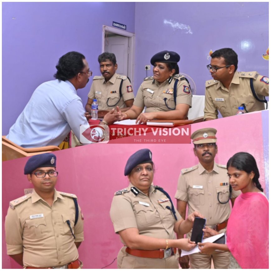 மேலும், கே.கே.நகர் ஆயுதப்படை திருமண மண்டபத்தில் திருச்சி மாநகர எல்லைக்குட்பட்ட பகுதியில் காணாமல் போய் கண்டுபிடிக்கப்பட்ட சுமார் ரூ.20 இலட்சம் மதிப்புள்ள விலை உயர்ந்த 98 ஆன்டிராய்டு செல்போன்கள் அதன் உரிமையாளிடம் திருச்சி மாநகர காவல் ஆணையர் ந.காமினி, ஒப்படைத்தார்.