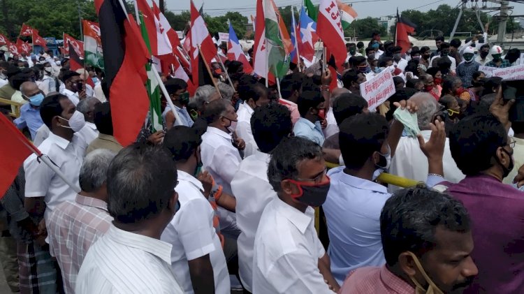 எனவே இதனை கண்டித்து திருவெறும்பூர் சட்டமன்ற தொகுதி உறுப்பினர் அன்பில் மகேஷ் பொய்யமொழி தலைமையில் காங்கிரஸ், கம்யூனிஸ்ட் கட்சி மற்றும் பலர் அரியமங்கலம் பகுதியில் கலந்து கொண்டனர்.