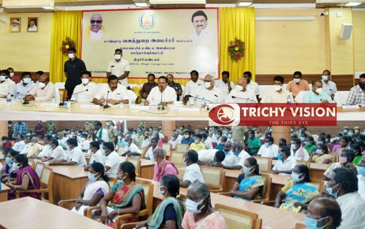 இதில் தமிழக நகர்ப்புற வளர்ச்சித்துறை அமைச்சர் கே.என்.நேரு, பள்ளிக்கல்வித்துறை அமைச்சர் மகேஷ் பொய்யாமொழி, தமிழக வனத் துறை அமைச்சர் ராமச்சந்திரன், பிற்படுத்தப்பட்டோர் நலத்துறை அமைச்சர் சிவசங்கர் ஆகியோர் கலந்து கொண்டு விவசாயிகளின் கருத்துக்களை கேட்டு மரக்கன்றுகள் மற்றும் கிராம குழுவினருக்கு சுழற்சி கடன் மகளிர் சுய உதவி குழுவினருக்கும் கடனுதவி மற்றும் நலத்திட்ட உதவிகள் வழங்கினார்.