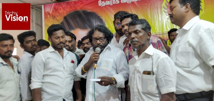 திருச்சி காந்தி மார்க்கெட் அருகே தாரநல்லூர் கீரக்கடை பகுதியில் வைக்கப்பட்டிருந்த பசும்பொன் முத்துராமலிங்க தேவர் புகைப்படம் தாங்கிய பலகை மர்மநபர்களால் கடந்த சில தினங்களுக்கு முன்பு சேதப்படுத்தப்பட்டது. அதனை முக்குலத்தோர் புலி படை தலைவர் கருணாஸ் பார்வையிட்டார்.பின்னர் செய்தியாளர்களுக்கு பேட்டியளித்த கருணாஸ்,
