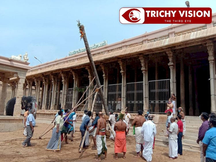 அறநிலையத்துறை அதிகாரிகள், கோவில் நிர்வாகிகள் மற்றும் பட்டாச்சார்யார்கள், ஆலயத்தினரின் முன்னிலையில் முகூர்த்தக்கால் பூஜிக்கப்பட்டு பின்னர் மங்கள வாத்தியங்கள் முழங்கிட முகூர்த்தக்கால் நடப்பட்டது.