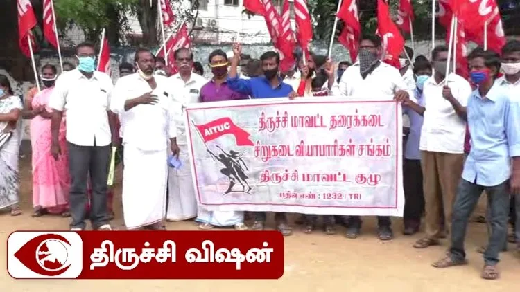 ஏற்கனவே கொரோனா ஊரடங்கு காரணமாக வியாபாரிகளின் வாழ்வாதாரம் பாதிக்கப்பட்டுள்ள நிலையில், தற்போது தீபாவளி உள்ளிட்ட பண்டிகை காலம் வருவதால் தங்களுக்கான அடிப்படை வசதிகளை செய்து தர வேண்டும் என்றும், தங்களின் வாழ்வாதாரத்தை பாதுகாக்க வலியுறுத்தியும் திருச்சி மாவட்ட தரைக்கடை மற்றும் சிறுகடை வியாபாரிகள்(AITUC) சங்கத்தினர் குடும்பத்துடன் வந்து திருச்சி மாவட்ட ஆட்சியர் அலுவலகத்தில் போராட்டத்தில் ஈடுபட்டனர்.