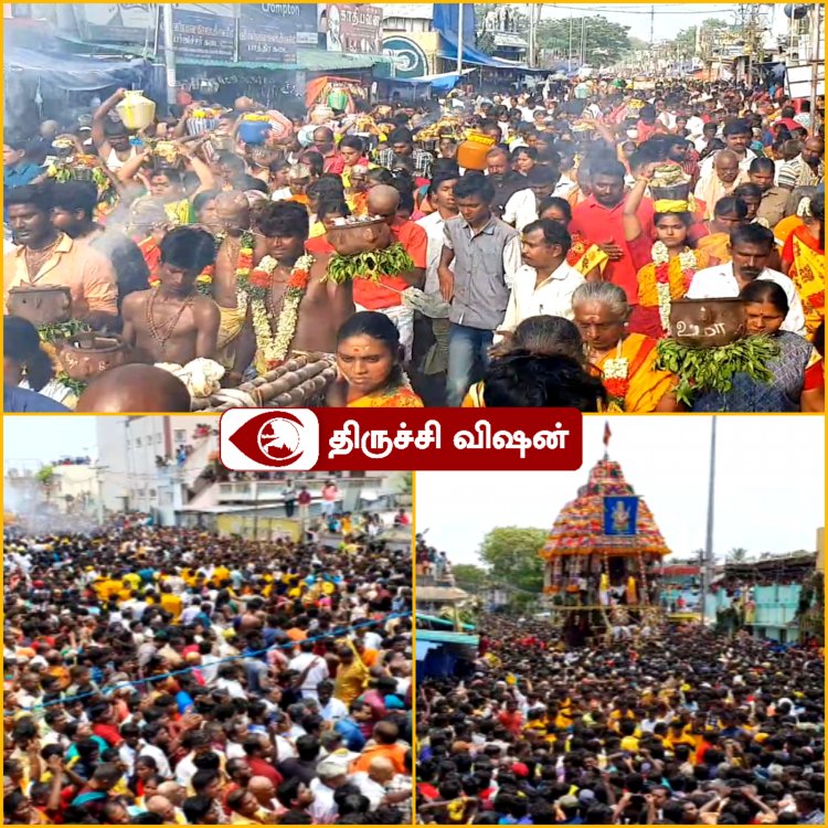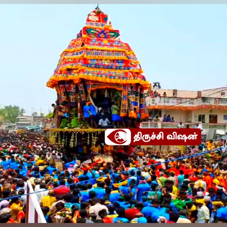 சமயபுரம் மாரியம்மன் கோயில் சித்திரை தேரோட்டம் லட்சகணக்கானோர் பங்கேற்புதிருச்சி மாவட்டம், சமயபுரம் மாரியம்மன் கோயில் தேரோட்டம் விழாவில் பக்தர்கள் பங்கேற்று தேரை வடம் பிடித்து இழுத்தனர்.