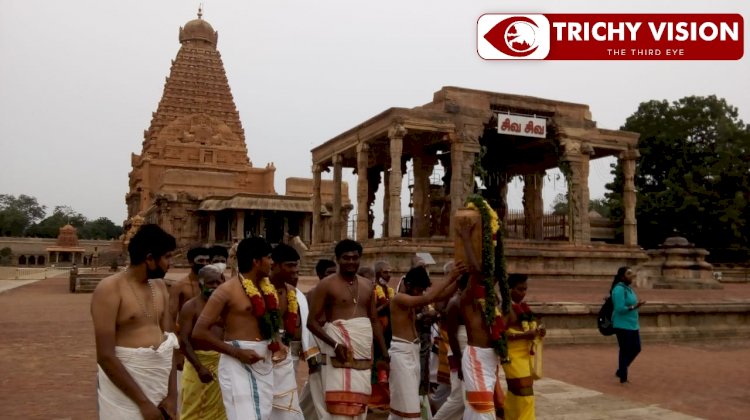 இன்று ராஜராஜசோழன் சிலைக்கு அரசியல் கட்சியினர் மற்றும் முக்கிய பிரமுகர்கள் மாலையை அணிவிக்க கூடிய நிகழ்வு நடைபெற இருப்பதால் தஞ்சை பெரிய கோவில் மற்றும் சோழன் சிலை இருக்கக்கூடிய பகுதிகளில் ஏராளமான காவல்துறையினர் குவிக்கப்பட்டு பாதுகாப்பு பணியில் ஈடுபட்டுள்ளனர். பல்வேறு அரசியல் அமைப்பினரும் தமிழில் பெருவுடையாருக்கு அர்ச்சனை செய்ய வேண்டும் என கோரிக்கை வைத்தனர் அதனடிப்படையில் தேவாரம் திருவாசகம் பாடி நிகழ்வு தொடங்கப்பட்டது.