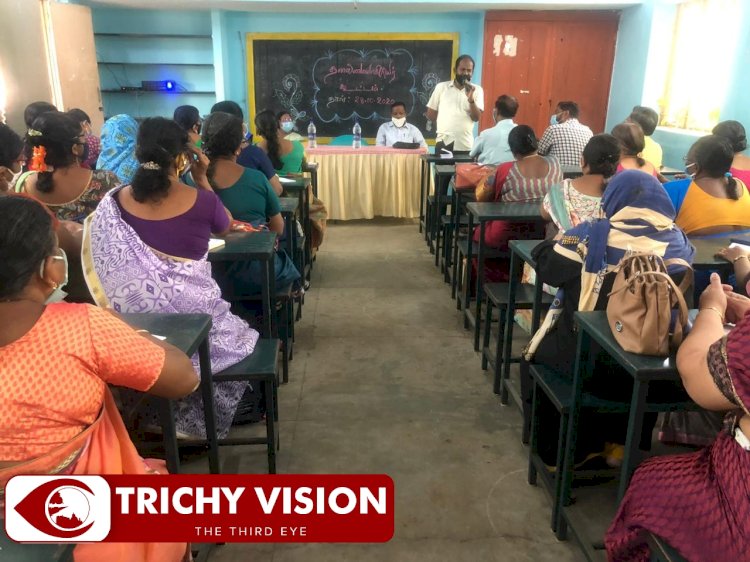 அதனடிப்படையில் புதிய வயது வந்தோர் கல்வித்திட்டம் – கற்போம் எழுதுவோம் இயக்கம் என்ற புதிய திட்டம் செயல்படுத்துதல் சார்ந்து, திருச்சி நகர சரக தொடக்க மற்றும் நடுநிலைப்பள்ளி தலைமையாசிரியர்களுக்கு திருச்சி மாவட்டக்கல்வி அலுவலர் தலைமையில் கூட்டம் தென்னூர் சுப்பையா நினைவு நடுநிலைப்பள்ளியில் நடைபெற்றது. புதிய திட்டத்தை சிறப்பாக செயல்படுத்துவது குறித்தும், திட்டத்தை விளக்கியும் திருச்சி மாவட்டக்கல்வி அலுவலர் சிறப்புரை வழங்கினார்.