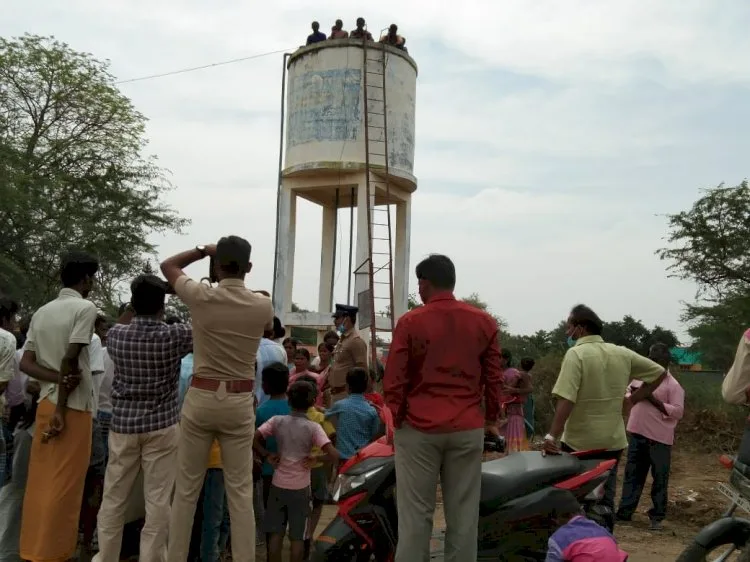 மணப்பாறை அருகே ஒரே நிலத்திற்கு வெவ்வேறு ஆவணங்கள் இருப்பதாக ஏற்பட்ட பிரச்சனையில் மேல்நிலை நீர்தேக்கத்தொட்டி மீது ஏறி ஊர்மக்கள் போராட்டம் – வட்டாட்சியர், மாவட்ட கூடுதல் காவல் கண்காணிப்பாளர், துணை கண்காணிப்பாளர் தலைமையில் பேச்சுவார்த்தை.