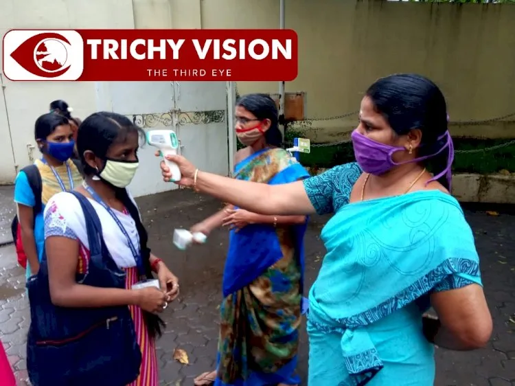 இந்நிலையில் திருச்சி ஸ்ரீமதி இந்திராகாந்தி மகளிர் கல்லூரியில் இன்று முதுகலை படிக்கும் மாணவர்களுக்கு வகுப்புகள் தொடங்கியுள்ளது. இதனை முன்னிட்டு மாணவர்கள் கல்லூரிக்கு வருகை தர ஆரம்பித்துள்ளனர். முன்னெச்சரிக்கை நடவடிக்கையாக கல்லூரி நுழைவு வாயிலில் மாணவர்களுக்கு பரிசோதனைகள் மேற் கொண்டு அனுப்பப்பட்டு வருகின்றனர்.