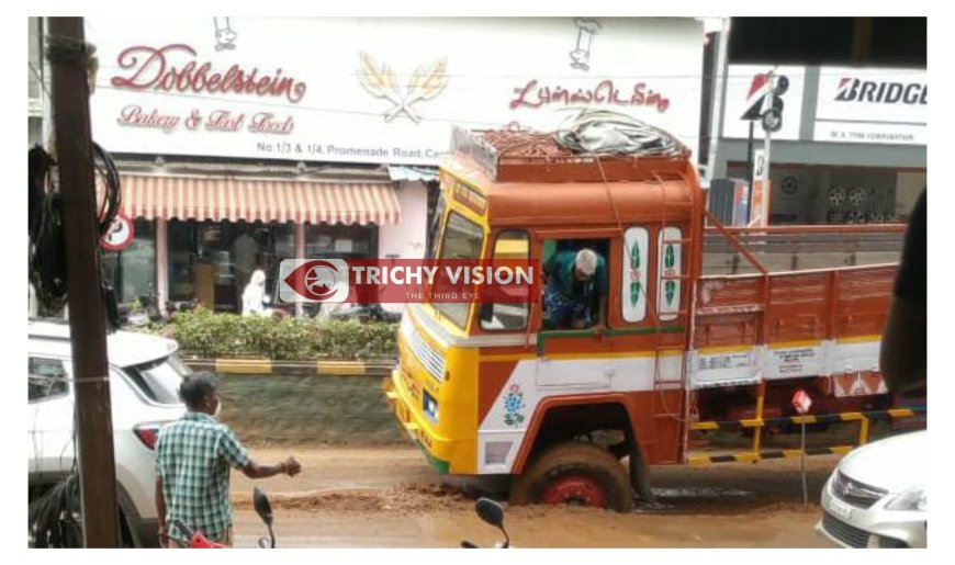 மீண்டும் பாதாள சாக்கடை குழிகள் பறிக்கப்பட்டு அந்த சாலையில் செம்மண் கலந்தநீர் ஓடியது. வாகன ஓட்டிகள் பயணிக்க முடியாத நிலையில் இருந்தது. இந்நிலையில் லாரி ஒன்று அவ்வழியே செல்லும்போது தோண்டப்பட்ட மூடிய குழிக்குள் சிக்கியது. முக்கிய சாலையாக இருப்பதால் போக்குவரத்து ஸ்தம்பித்த நிலையில் அதன் பிறகு போக்குவரத்து போலீசார் அதில் தடுப்பு வேலிகளை அமைத்துள்ளனர்.