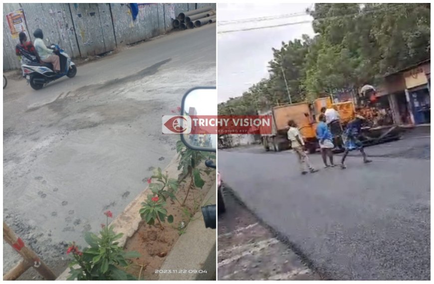 இது குறித்து திருச்சி விஷன் சுட்டிக்காட்டி செய்தி வெளியிட்டது. இதனை தொடர்ந்து வாகன ஓட்டிகள் மற்றும் பொதுமக்கள் சிரமத்தை போக்கும் வகையில் மாநகராட்சி நிர்வாகம் உடனடியாக புதிய தார் சாலை அமைத்துள்ளது. இதனால் வணிகர்களும், பொதுமக்கள் நிம்மதி அடைந்துள்ளனர். செய்தி வெளியிட்டு உடனடி தீர்வு கண்ட திருச்சி விஷன் மற்றும் மாநகராட்சி நிர்வாகத்திற்கு நன்றியை தெரிவித்துள்ளனர்.