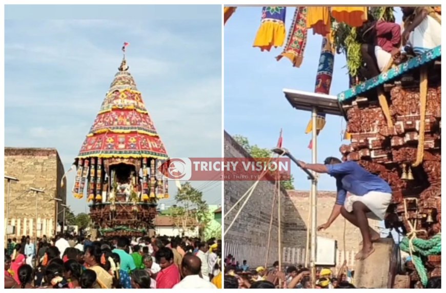 இந்த நிலையில் இளைஞர் ஒருவர் அசாத்தியமாக சக்கரத்தில் ஏறி கம்பத்தை வளைத்து பிடித்து நகர்த்தினார். இதனை அடுத்து ஊர் பொதுமக்கள் மற்றும் இளைஞர்கள் சாதுர்யமாக செயல்பட்ட இளைஞருக்கு பாரட்டுக்களை தெரிவித்தனர்.
