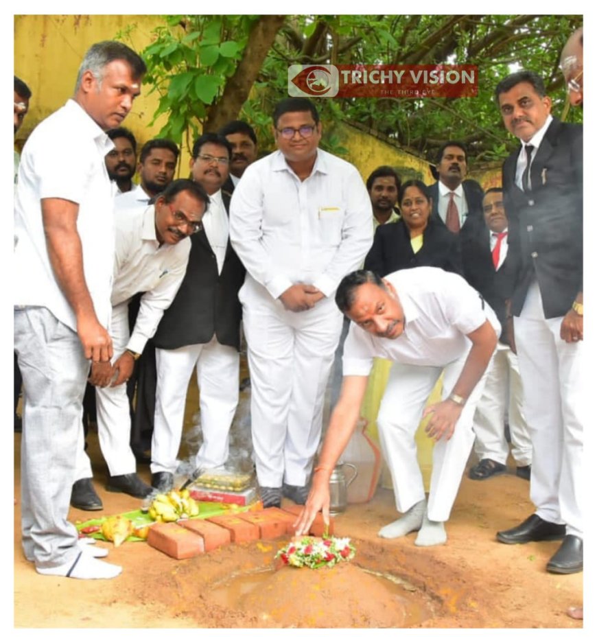 திருச்சி நீதிமன்ற வளாகத்தில் வழக்கறிஞர்களுக்கான இருசக்கர வாகனம் நிறுத்தும் இடத்திற்கான அடிக்கல் நாட்டு விழா திருச்சி மாவட்ட முதன்மை நீதிபதி மணிமொழி தொடங்கி வைத்தார்.