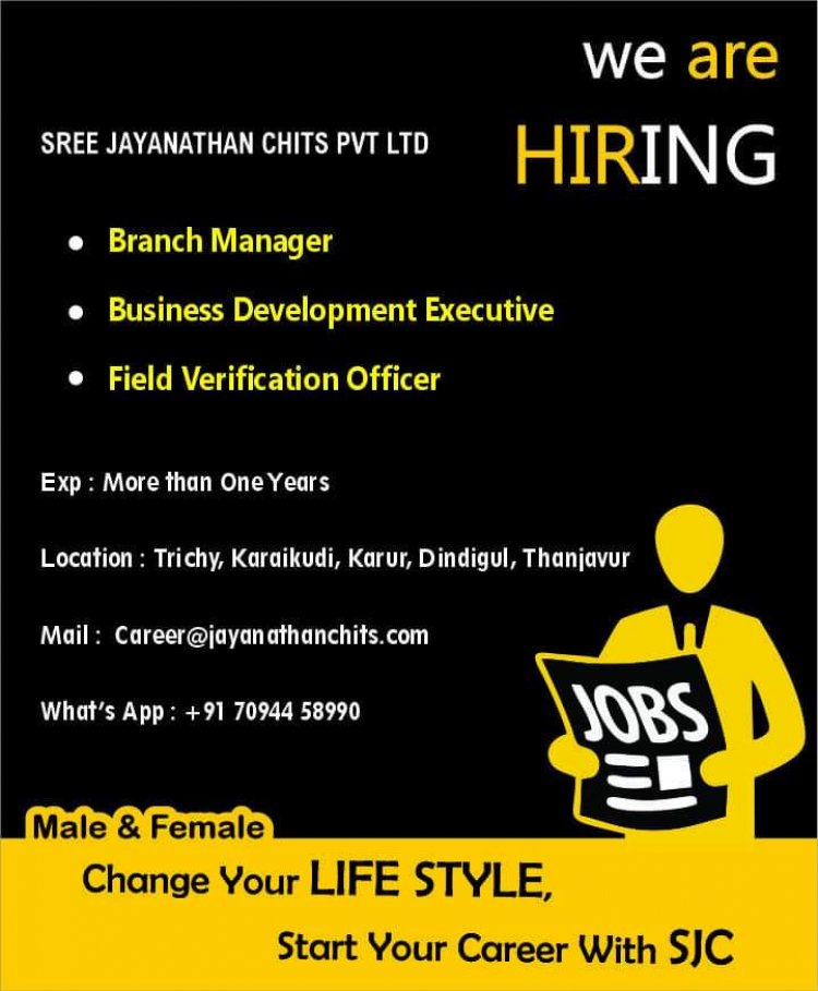 ஜெயநாதன் சிட்ஸ் தனியார் நிறுவனம் பல்வேறு பணியிடங்களுக்கு ஆட்கள் தேவை என்கிற விளம்பரத்தை வெளியிட்டுள்ளது.
