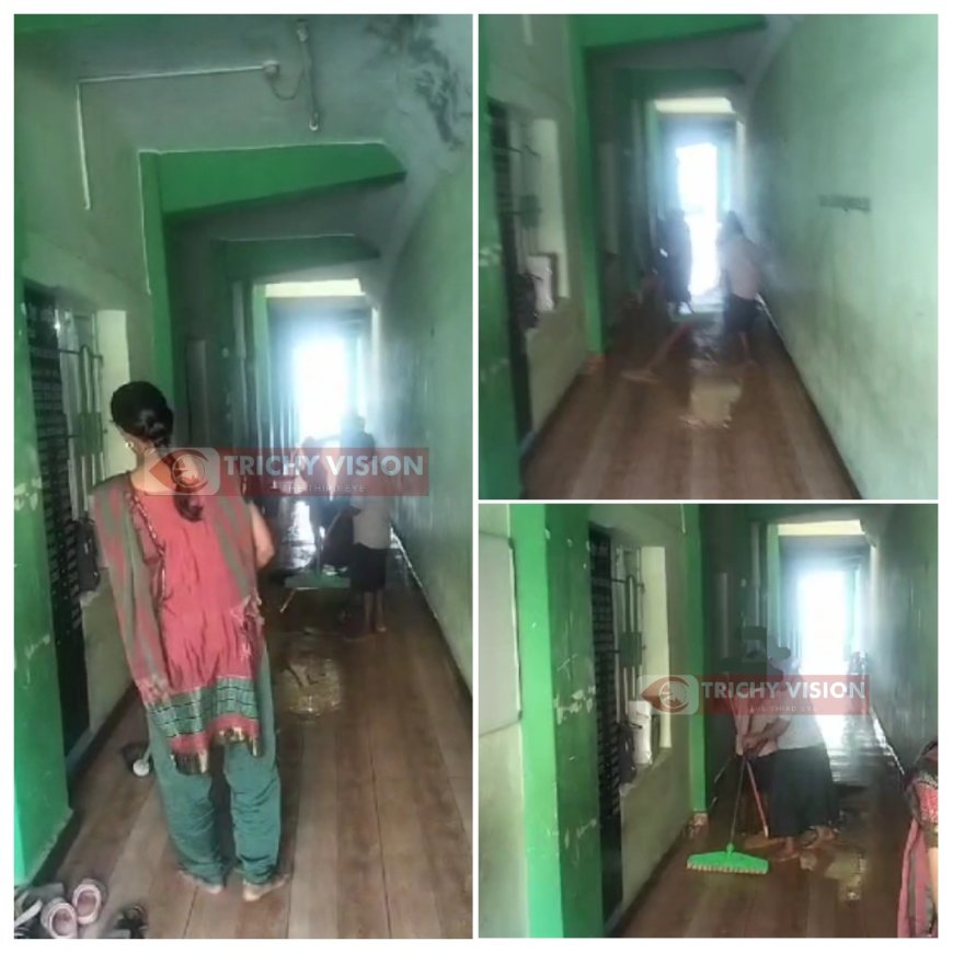 இவற்றை ஆசிரியர்கள் மற்றும் மாணவர்கள் சுத்தம் செய்கின்றனர். இதன் வீடியோ வெளியாகி மாணவ மாணவிகள் பெற்றோர்கள் மத்தியில் பரபரப்பை ஏற்படுத்தியுள்ளது. மேலும் கழிவறை சுத்தம் செய்யாமல் நோய் தொற்று ஏற்படும் அபாயத்தில் உள்ளது. வகுப்பறை மற்றும் கழிவறைகளை தூய்மை செய்ய தூய்மை பணியாளர்கள் இல்லாததால் ஆசிரியர்கள் மற்றும் மாணவ, மாணவிகள் தூய்மை செய்யும் பணியில் ஈடுபடுவதாக பெற்றோர்கள் தெரிவிக்கின்றனர்.