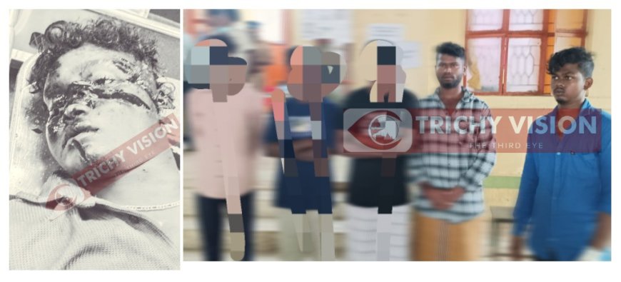 இந்த நிலையில் விஷ்ணுவை கொலை செய்த மூன்று சிறுவர்கள் மற்றும் ஸ்ரீரங்கம் தாலுகா கொடியாலம் மேல தெருவைச் சேர்ந்த ஆகாஷ் (23), மணிமாறன் (22) ஆகிய ஐந்து பேர் மணப்பாறை காவல் நிலையத்தில் சரணடைந்துள்ளனர். இதைத் தொடர்ந்து ஜீயபுரம் போலீசார் அவர்களை மணப்பாறையில் இருந்து அழைத்து வந்து கொலைக்கான காரணம் குறித்து விசாரணை மேற்கொண்டு வருகின்றனர்.