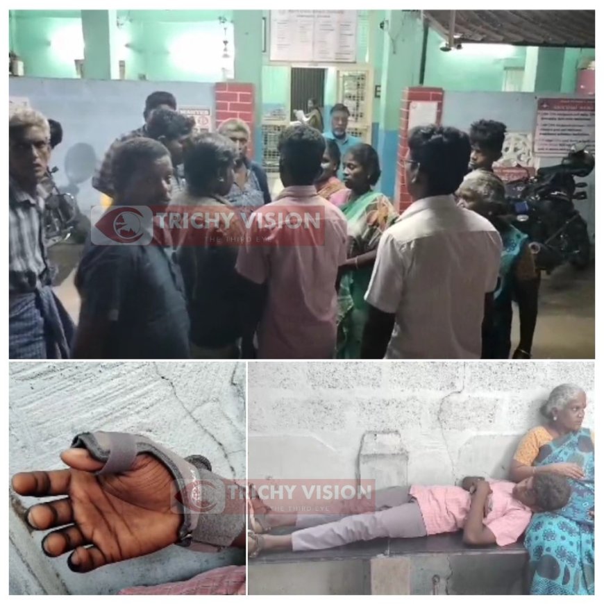 இதில் மாணவன் ஜெகனுக்கு கையில் எலும்பு முறிவு ஏற்பட்டது. இது குறித்து மாணவன் பெற்றோருக்கு அளித்த தகவலின் பேரில் பள்ளிக்கு வந்த பெற்றோர்கள் மாணவனை தொட்டியும் அரசு மருத்துவமனையில் சிகிச்சைக்கு அனுமதித்தனர். பின்னர் முசிறியில் உள்ள தனியார் மருத்துவமனையில் மாணவன் சிகிச்சை பெற்றார்.