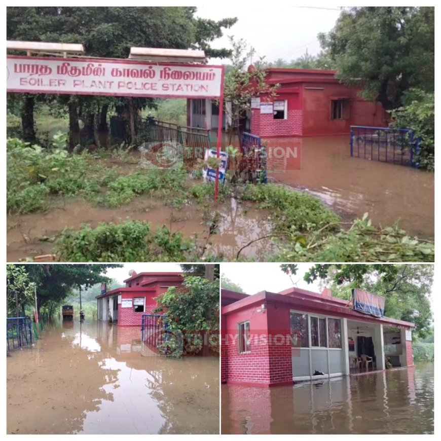 திருச்சி மாவட்டத்தில் கடந்த இரண்டு நாட்களாக தொடர் மழை பெய்து வருகிறது. இந்த நிலையில் பல பகுதிகளில் மழைநீர் வெள்ளம் சூழ்ந்து வருகிறது. இதன் ஒரு பகுதியாக திருச்சி மாவட்டம் திருவெறும்பூர் அருகே உள்ள பெல் வளாகத்தில் செயல்பட்டு வரும் பெல் காவல் நிலையத்தை மழை வெள்ளம் சூழ்ந்தது.