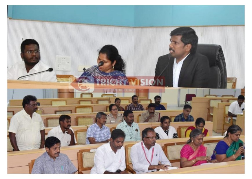 திருச்சி மாவட்ட ஆட்சியர் அலுவலகக் கூட்டரங்கில் சமயபுரம் அருள்மிகு மாரியம்மன் திருக்கோயில், தைப்பூச திருவிழா (02.02.2025) முதல் (12.02.2025) வரை நடைபெறவுள்ளதால் இந்நாட்களில் பக்தர்கள் எவ்வித சிரமமுன்றி சுவாமி தரிசனம் மேற்கொள்ளும் வகையில் முன்னேற்பாடு பணிகள் குறித்து மாவட்ட ஆட்சித்தலைவர் பிரதீப்குமார் தலைமையில் அனைத்துத் துறை அலுவலர்களுடனான ஒருங்கிணைப்பு கூட்டம் நடைபெற்றது.