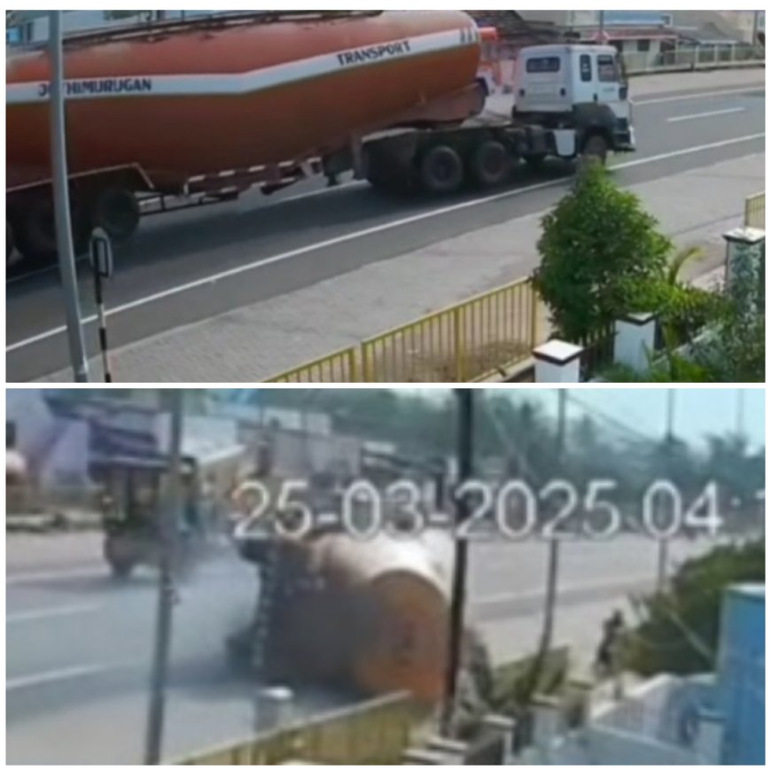 துறையூர் அருகே ஓட்டுனர் கட்டுப்பாட்டை இழந்த பல்கர் லாரி சாலையில் கவிழ்ந்து விபத்து.இருசக்கர வாகனத்தில் எதிரே வந்த பெண் மீது மோதியது.அதிர்ஷ்டவசமாக பெண் சிறு காயங்களுடன் உயிர் தப்பினார்.