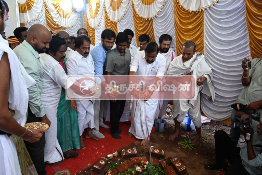 திருச்சி மாநகருக்கு உட்பட்ட உறையூர் முதல் கோணக்கரை குடமுருட்டி பாலம் வரை ₹.68 கோடி மதிப்பில் புதிய சாலைக்கான பூமி பூஜை விழா இன்று நடைபெற்றது. இந்நிகழ்வில் நகராட்சி நிர்வாகத்துறை அமைச்சர் கே.என்.நேரு கலந்து கொண்டு புதிய சாலைக்கு அடிக்கல் நாட்டினார்.