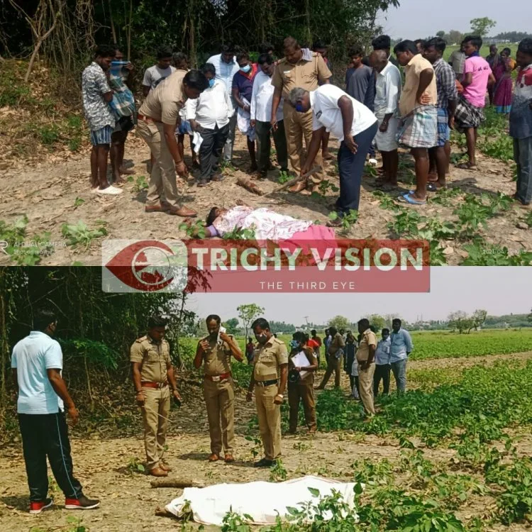 இது குறித்து அப்பகுதி விவசாயிகள் மற்றும் பொதுமக்கள் லால்குடி காவல் துறையினருக்கு தகவல் கொடுத்தனர். சம்பவ இடத்திற்கு வந்த போலீசார் சடலமாக கிடந்த பெண்ணின் உடலைக் கைப்பற்றி, உடற்கூறு ஆய்விற்காக திருச்சி அரசு மருத்துவமனைக்கு அனுப்பி வைத்து விசாரணை நடத்தி வருகின்றனர்.