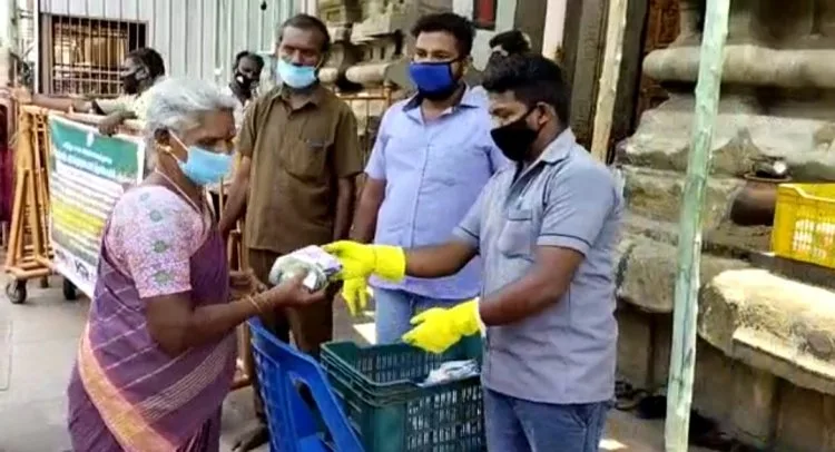 இந்நிலையில் கோவில் தினந்தோறும் நடைபெற்று வரும் அன்னதானம் தடைபட்ட நிலையில் ஸ்ரீரங்கம் அருள்மிகு அரங்கநாத சுவாமி திருக்கோயில் இன்று(28.04.2021) 350 நபர்களுக்கு அன்னதான உணவு பொட்டலங்கள் வழங்கப்பட்ட து.