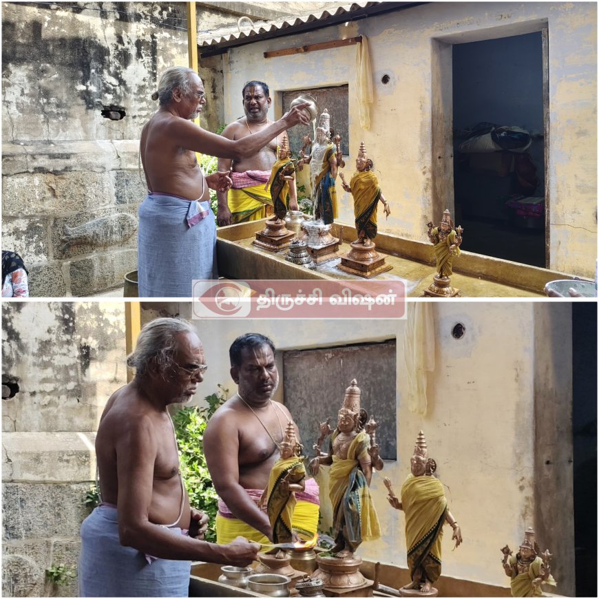அதனைத் தொடர்ந்து பத்தாம் நாளான இன்று துறையூர் வட்டம் சலவையாளர்கள் முறைப்பாடு மற்றும். தீர்த்தவாரி நடைபெற்றது. தீர்த்தவாரியின்போது சாவையாளர்கள் புது மண்டபத்திலிருந்து சுவாமிக்கு சீர்வரிசை எடுத்து வந்தனர். அதனை தொடர்ந்து அர்ச்சகர் சந்தானம் தலைமையில் சுவாமி மற்றும் அம்பாள் ஸ்ரீதேவி பூதேவி ஆகியோருக்கு பால், தயிர், இளநீர், திருமஞ்சனம், திரவிய பொடி, பஞ்சாமிர்தம்,தேன் போன்ற பொருள்களின் அபிஷேகம் நடைபெற்றது