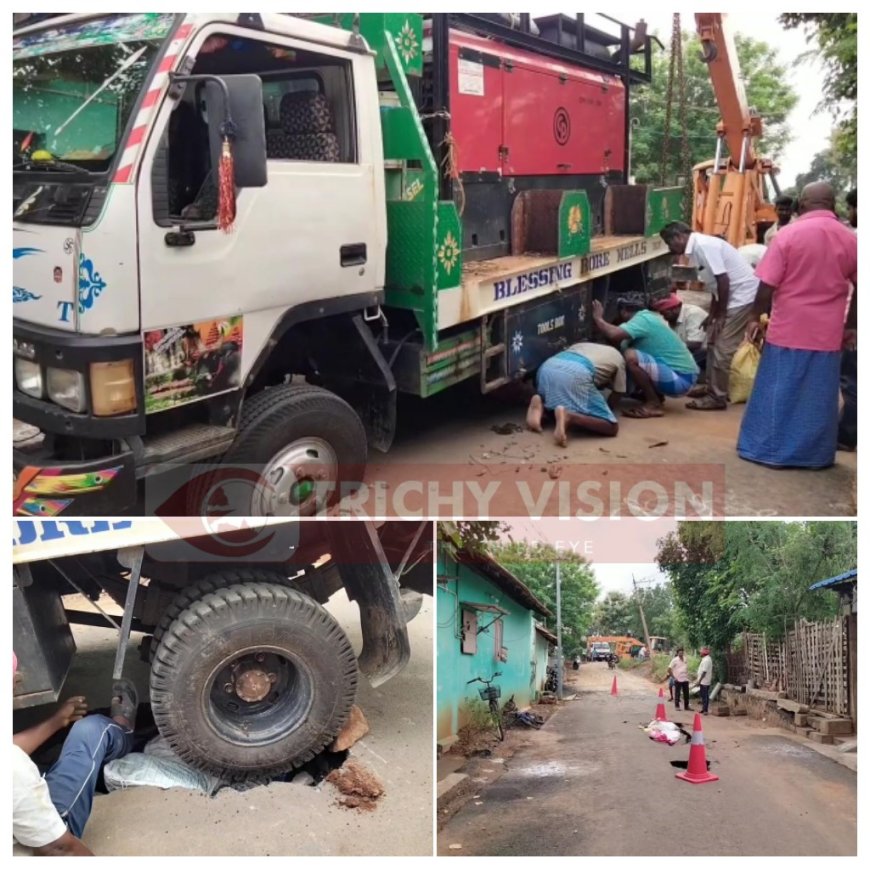 திருச்சி மாவட்டம் திருவெறும்பூர் அருகே உள்ள மாநகராட்சி 39வது வார்டு காட்டூர் எல்லைக்குடி தலை கிராமத்தில் சுமார் 1000-க்கும் மேற்பட்ட குடும்பங்கள் உள்ளன. இங்கு பாதாள சாக்கடை பணிக்காக தோண்டப்பட்ட பள்ளங்களை சீரமைக்காமல் அதன் மீது கடந்த 6 மாதங்களுக்கு முன்பு தரமற்ற முறையில் தார் சாலை அமைக்கப்பட்டதாக அப்பகுதி மக்கள் குற்றம் சாட்டுகின்றனர்.