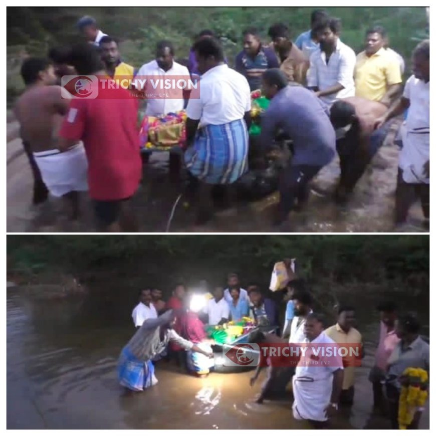திருச்சி மாவட்டம், மணப்பாறையை அடுத்த சங்கிலியாண்டபுரம் பகுதியில் உள்ள ஒரு மயானத்திற்கு செல்ல வேண்டும் என்றால் அங்குள்ள ஆற்றின் வழியாகத் தான் இறந்தவர்கள் உடலை எடுத்துச் சென்று மக்கள் தகனம் செய்து வந்தனர்.