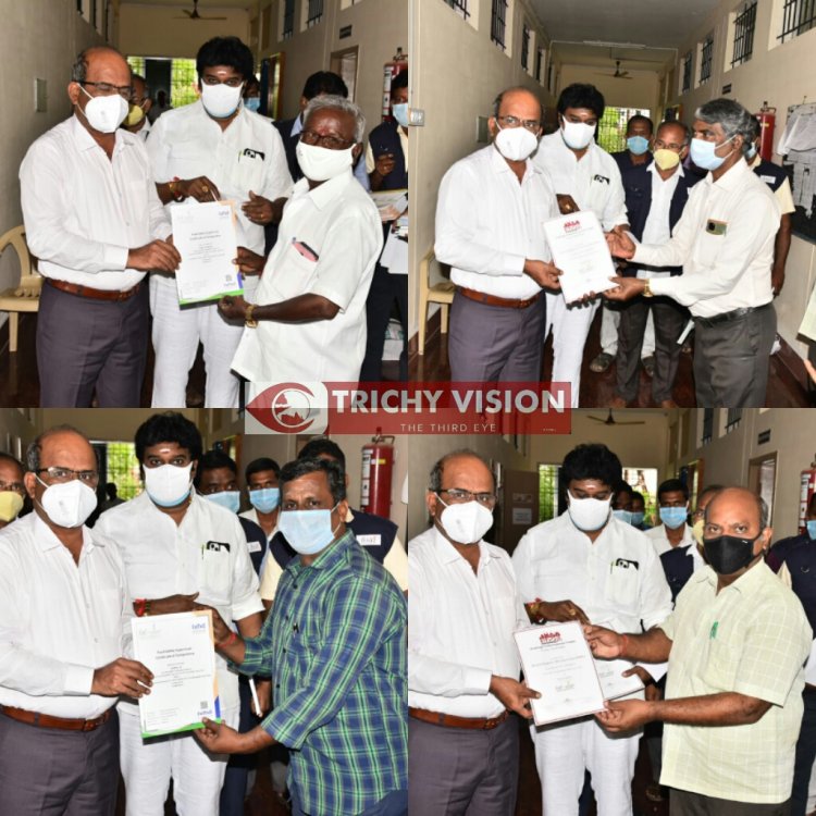 சுத்திகரிக்கப்பட்ட குடிநீர் நிறுவனங்களுக்கு 03.08.2021 அன்று நடைபெற்ற விழிப்புணர்வு கூட்டத்தில் சுமார் 26 நபர்களுக்கு FOSTAC ( Food Safety Training and Certification) பயிற்சி அளிக்கப்பட்ட பயிற்சி சான்றிதழ்களையும், திருச்சிராப்பள்ளி மாவட்டத்தில் உள்ள சுமார் 11 உணவகங்களுக்கு உணவு பாதுகாப்பு துறை புதுடெல்லி அங்கீகரிக்கப்பட்ட பயிற்சி நிறுவனத்தின் மூலம் 11 HYGIENE RATING (சுகாதார மதிப்பீடு) சான்றிதழ்களையும், ஆகமொத்தம் 527 சான்றிதழ்களையும் மாவட்ட ஆட்சியர் சிவராசு வழங்கினார்.