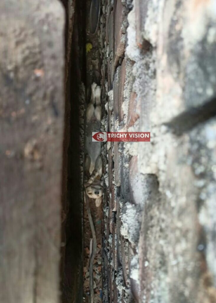 இதனால் அவர் திருச்சி தீயணைப்பு நிலையத்திற்கு தகவல் கொடுத்தையெடுத்து உடனே விரைந்து வந்த தீயணைப்பு நிலைய அலுவலர் தலைமையிலான தீயணைப்பு வீரர்கள் அந்த சுவற்றை உடைத்தனர்.