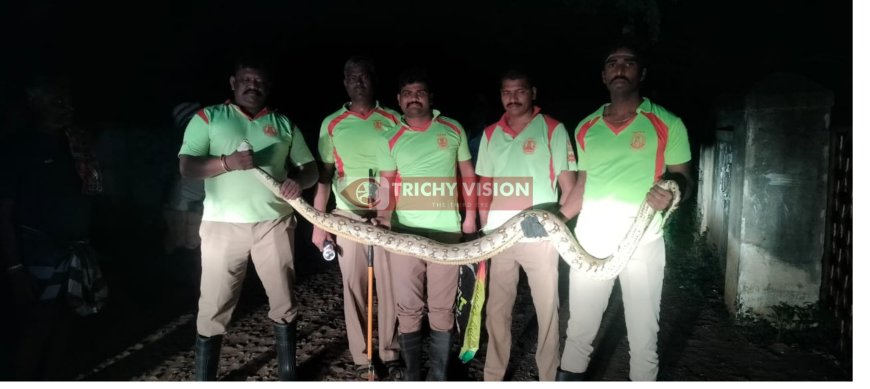 திருச்சி மாவட்டம் துவரங்குறிச்சி அடுத்த புங்குருனிபட்டி பள்ளிக்கூடம் சாலை அருகே 10 அடி நீளம் மலைப்பாம்பு ஒன்று கிடந்துள்ளது. இதனை கண்ட அப்பகுதி பொதுமக்கள் துவரங்குறிச்சி தீயணைப்புத் துறையினருக்கு தகவல் அளித்தனர்.