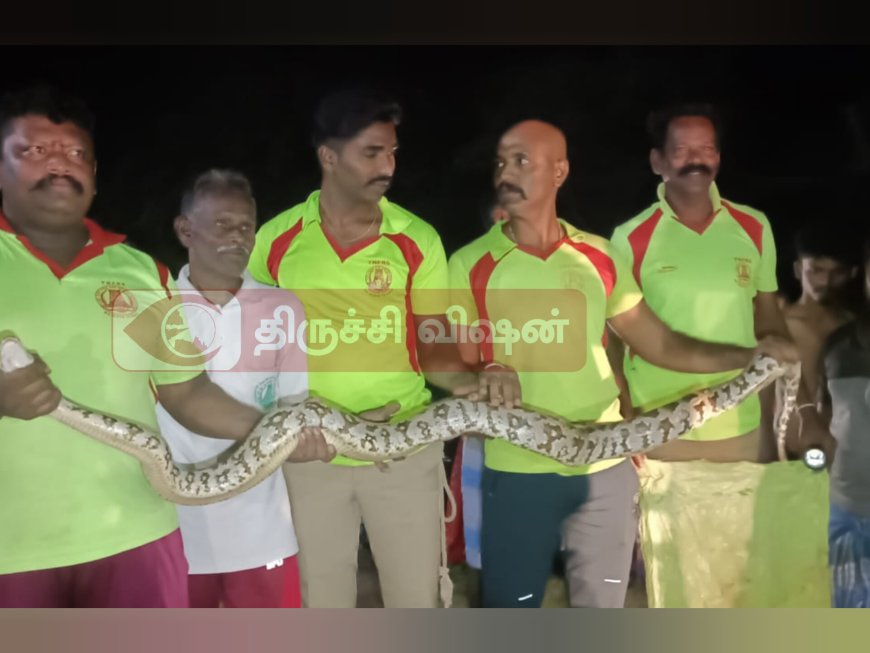 திருச்சி அருகே 12 அடி நீள மலை பாம்பு பிடிபட்டது