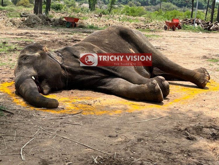 திருச்சி எம்.ஆர்.பாளையம் யானைகள் முகாமில், காலை 9 மணியளவில் ரோகினி யானை சரிந்து விழுந்து இறந்தது. அந்த யானைக்கு ஒரு மாதத்துக்கும் மேலாக சிகிச்சை அளிக்கப்பட்டு வந்தது. ஸ்ரீரங்கம் மருத்துவர் சதாசிவம் இன்று காலை யானைக்கு சிகிச்சை அளித்து கொண்டிருந்தனர்.