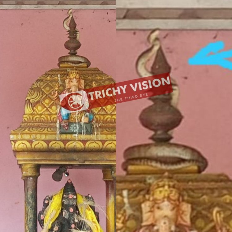 திருச்சி மாவட்டம் மணப்பாறை அடுத்த இடையப்பட்டியான்பட்டியில் உள்ள ஸ்ரீ வலம்புரி விநாயகர் ஆலயத்தில் இன்று மதியம் 7 அடி நீள மஞ்சள் சாரை பாம்பு ஒன்று புகுந்தது. ஆலயத்தில் புகுந்த பாம்பு அங்கிருந்த மூலவர் விநாயகர் சிலையின் மேல் இருந்த கலசத்தின் மீது ஏறி வட்டமிட்டு படுத்துக்கொண்டது.