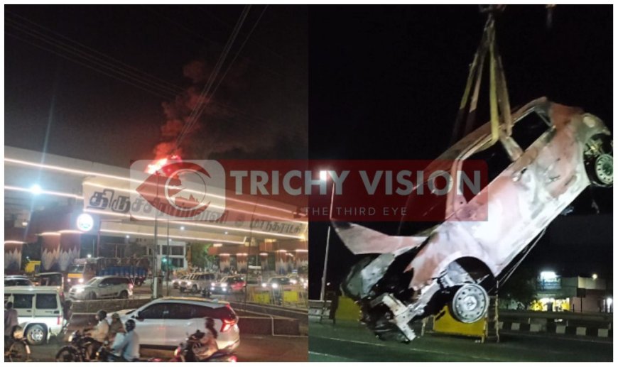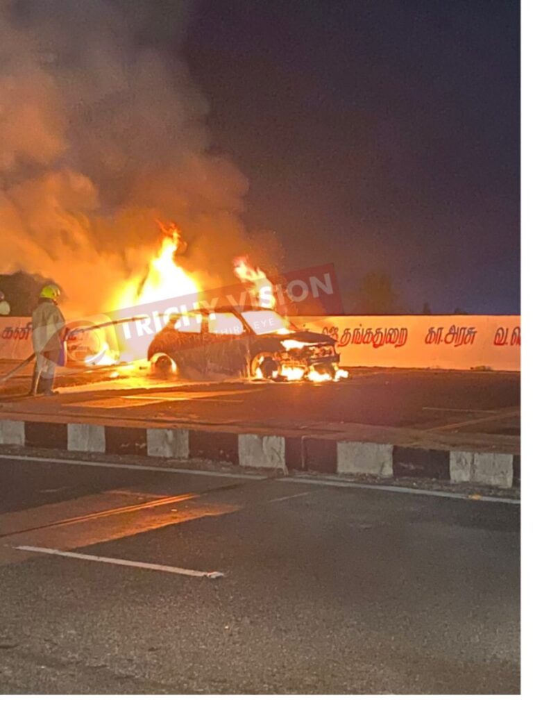 அப்போது தனது மனைவிக்கு உடல்நிலை சரியில்லாத காரணத்தால் மணப்பாறை வரை சென்றவர் மீண்டும் தஞ்சாவூர் செல்வதற்காக டிவிஎஸ் டோல்கேட் பாலத்தில் காரில் வந்து கொண்டிருந்ந போது தான் காரில் புகை வந்துள்ளது.