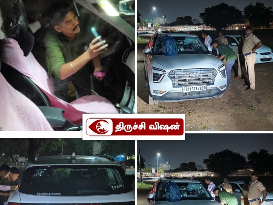 சிறிது நேரத்தில் திருச்சி ஜி.கார்னர் பகுதியில் அந்த கார் தனியாக நின்று கொண்டிருப்பதாக காவல்துறைக்கு தகவல் கிடைத்தது. யார் இந்த காரை எடுத்துச் சென்றார்கள் ஏன் இங்கே விட்டு சென்றார்கள் என்பது குறித்து தடவியல் நிபுணர்களை வைத்து காவல்துறையினர் சோதனை செய்து வருகின்றனர். தஞ்சாவூர் மாதா கோட்டை பகுதியை சேர்ந்த கிருஷ்ணமூர்த்தி ஓய்வு பெற்ற இந்தியன் வங்கி ஊழியர் இவர் குடும்பத்துடன்