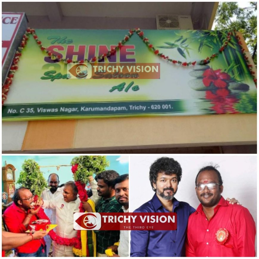 இந்த ஷைன் ஸ்பாவின் உரிமையாளர் செந்தில் இவர் தளபதி விஜய் மக்கள் இயக்கம் திருச்சி மத்திய மாவட்ட பொறுப்பாளராக உள்ளார் என்பது குறிப்பிடத்தக்கது.