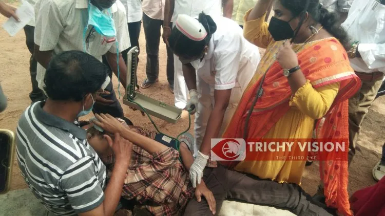 உடனடியாக முகாமில் இருந்த மருத்துவர்கள் உடனடியாக வந்து மாணவனுக்கு ரத்த அழுத்தம் ஆகியவை பரிசோதனை செய்தனர். மேலும் அவருக்கு தண்ணீர் மற்றும் மருந்துகள் கொடுக்கப்பட்டு, திருச்சி அரசு மருத்துவமனை டீன் வனிதா மற்றும் மருத்துவர்கள் மாணவனை பரிசோதித்தனர். அதில் மாணவனின் உடல்நிலை மாற்றங்கள் ஏதாவது தென்படுகிறதா என்பது உள்ளிட்ட பல்வேறு விவரங்களை கேட்டறிந்தனர்.