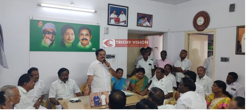 திருச்சி அதிமுக புறநகர் வடக்கு மாவட்ட கழகம் சார்பில், நான்கு தொகுதிகள் உட்பட்ட, ஒன்றிய, பகுதி, நகர, பேரூர் கழக செயலாளர்கள், சார்பு அணி செயலாளர்களுக்கான ஆலோசனை கூட்டம் திருச்சி தில்லை நகர் பகுதியில் உள்ள, புறநகர் மாவட்ட கழக அலுவலகத்தில் நடைபெற்றது.